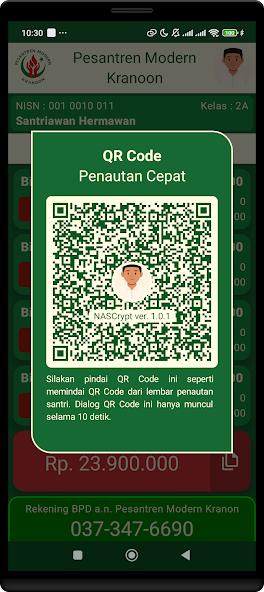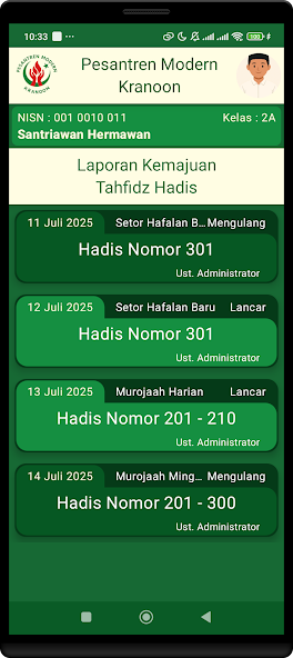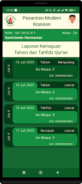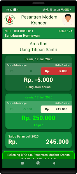 Aplikasi ini bertujuan untuk memantau aktivitas santri secara langsung (real-time) yang dilakukan oleh wali santri. Berikut ini yang dipantau: